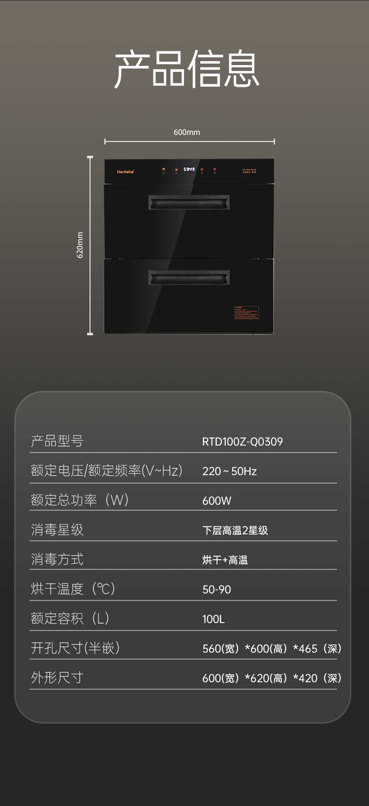 開孔尺寸 :560(寬)*465(深)*600(高)