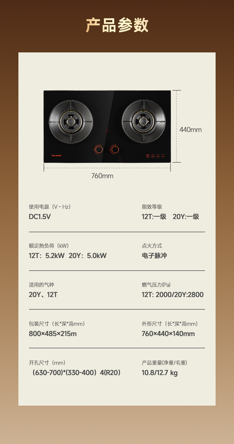 燃氣壓力(Pa):20Y: 2800、12T: 2000